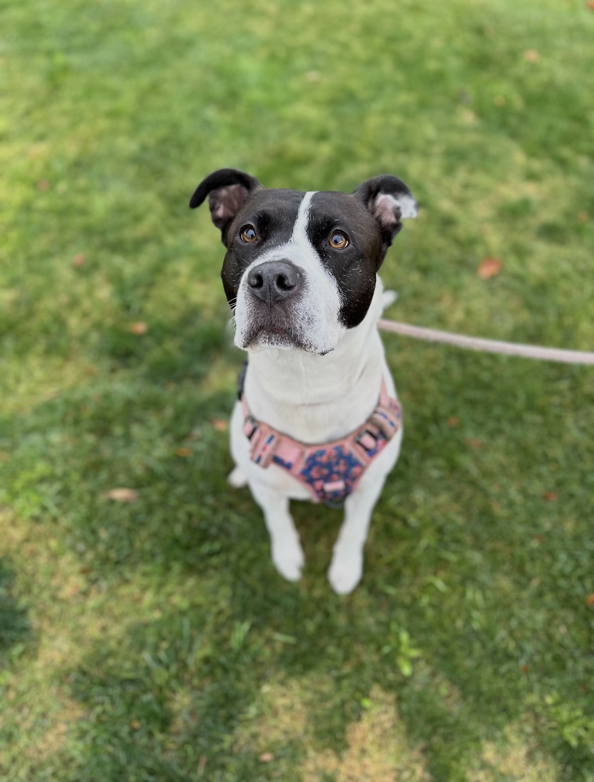 GORGEOUS Blossom is 60 lb 4 y/o staffy mix! She has medium energy - she loves to play fetch and give CUDDLES and hugs first thing in the morning and when you come home. Blossom is low maintenance in the home, house and crate trained and relaxed!