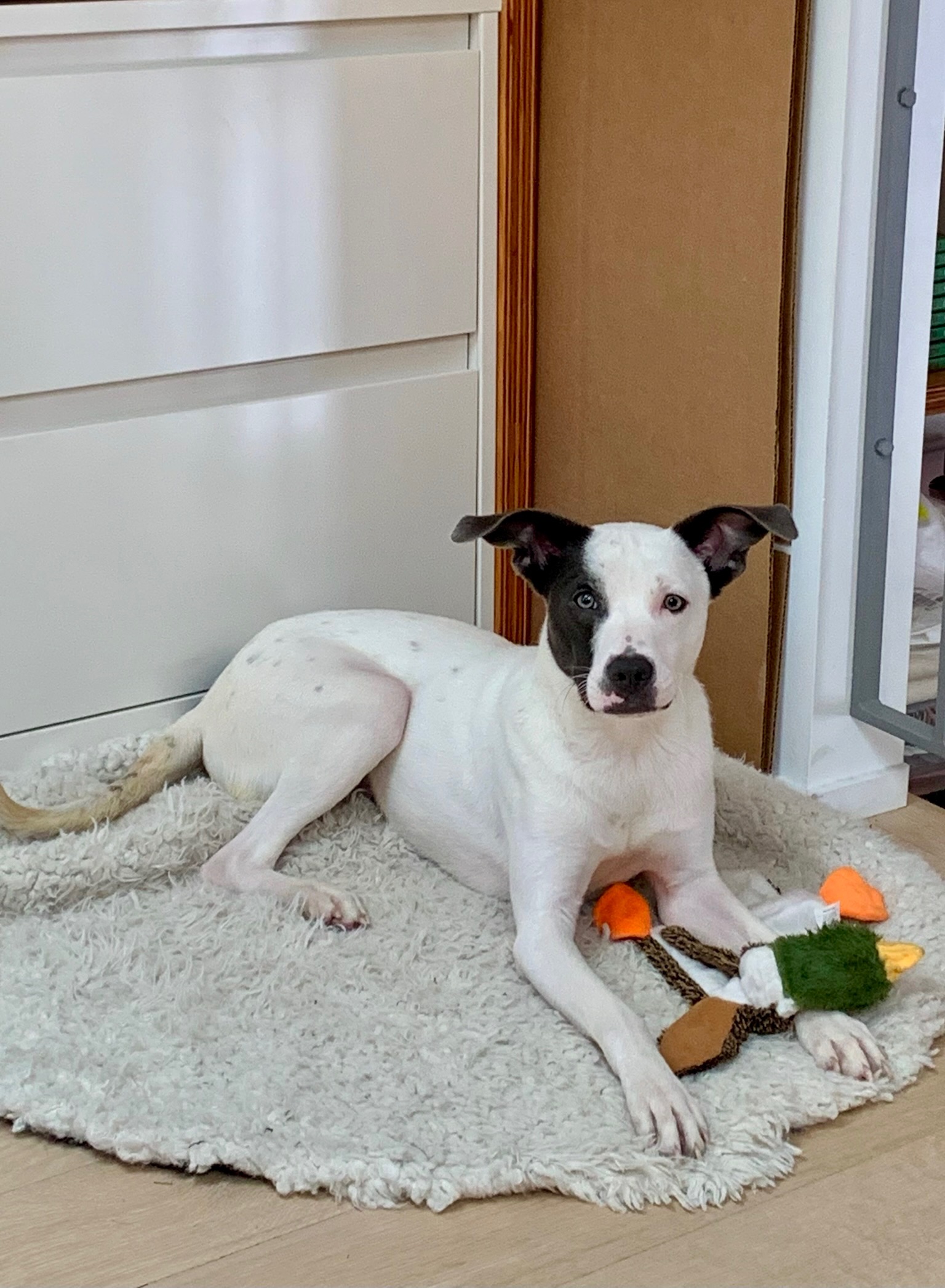 Delgado is the life of the party wrapped in a white and black coat. This 1 year old and 4 months , 35 pound terrier mix was saved from the Carson Shelter and is now ready to fill a home with love and laughter.
