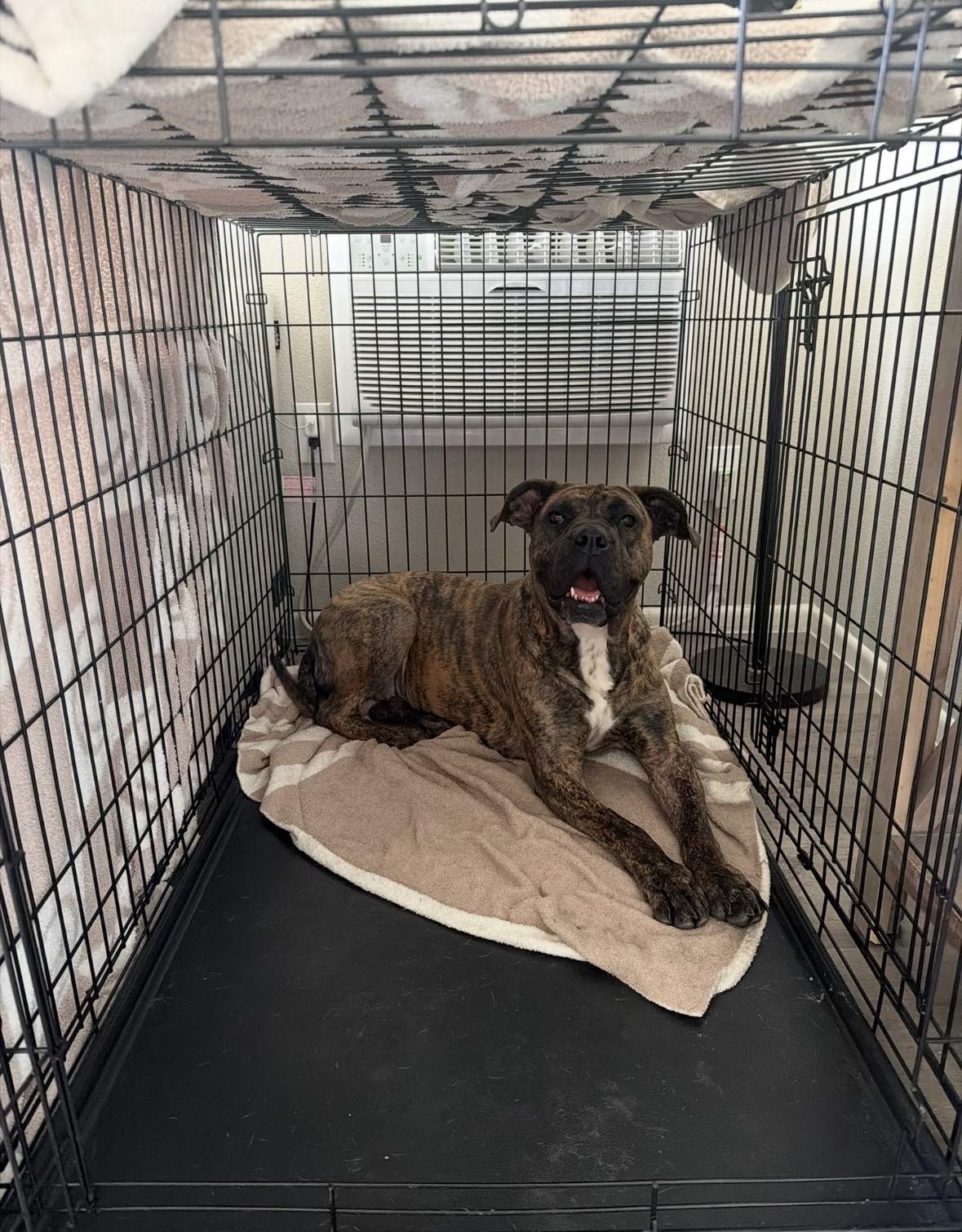 Ginny is a 4 year old brindle Boxer beauty who is 70 pounds and will absolutely steal your heart. With her soulful eyes, goofy smile, and gentle nature, she is the perfect mix of elegance, loyalty, and playfulness. She radiates love wherever she goes and has a joyful personality that instantly brightens your day.