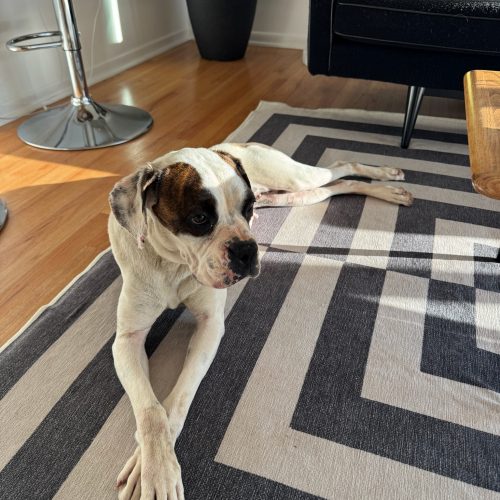 Gracie is a 6 year old Boxer with the sweetest soul and a heart full of love. This gentle girl is the definition of mellow, perfectly content to take life at a slower pace and soak up all the cozy moments.