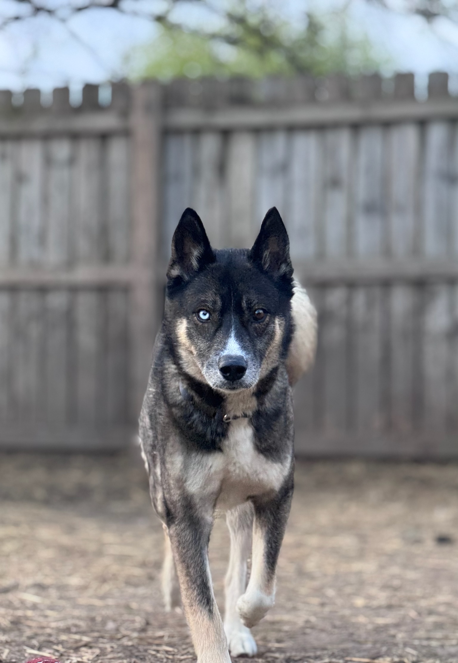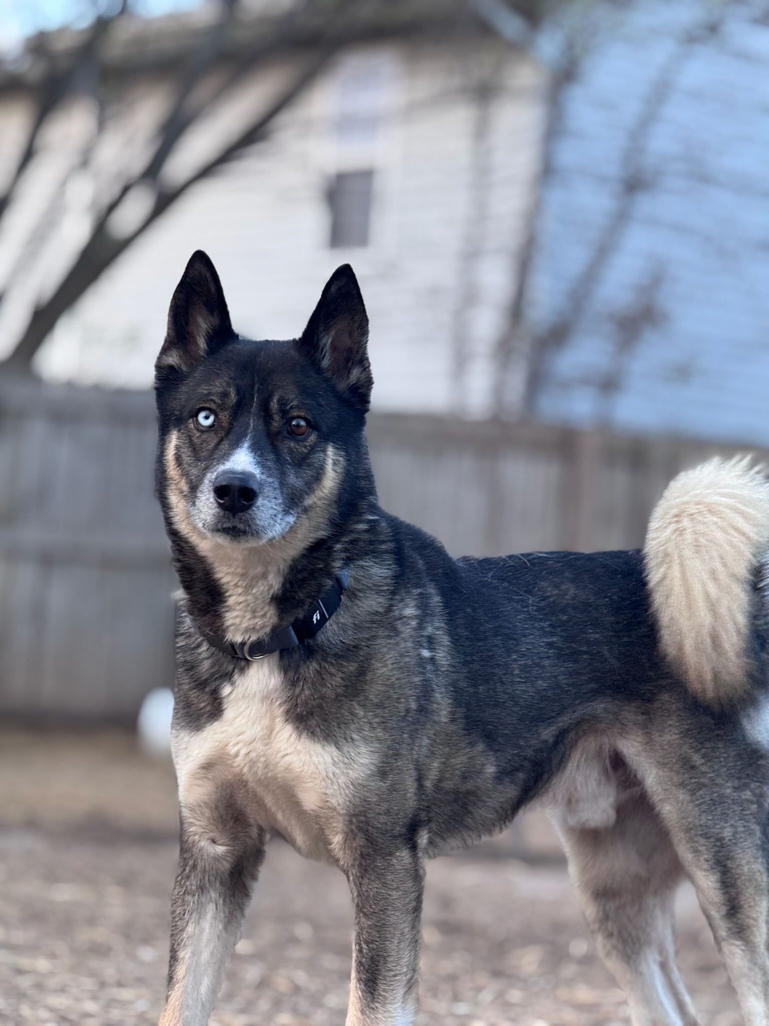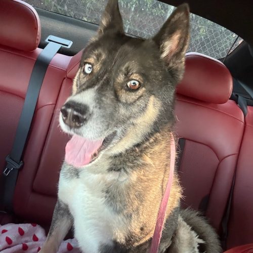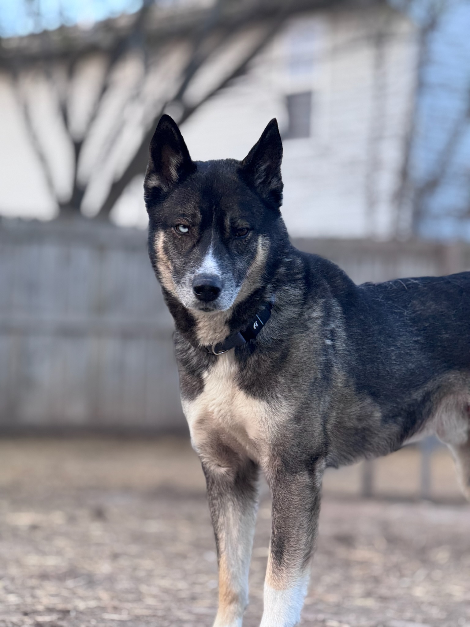 He is a 4 year old tricolor Malinois Husky mix weighing 56 pounds, who is ready for a fresh start after being owner surrendered due to a move.