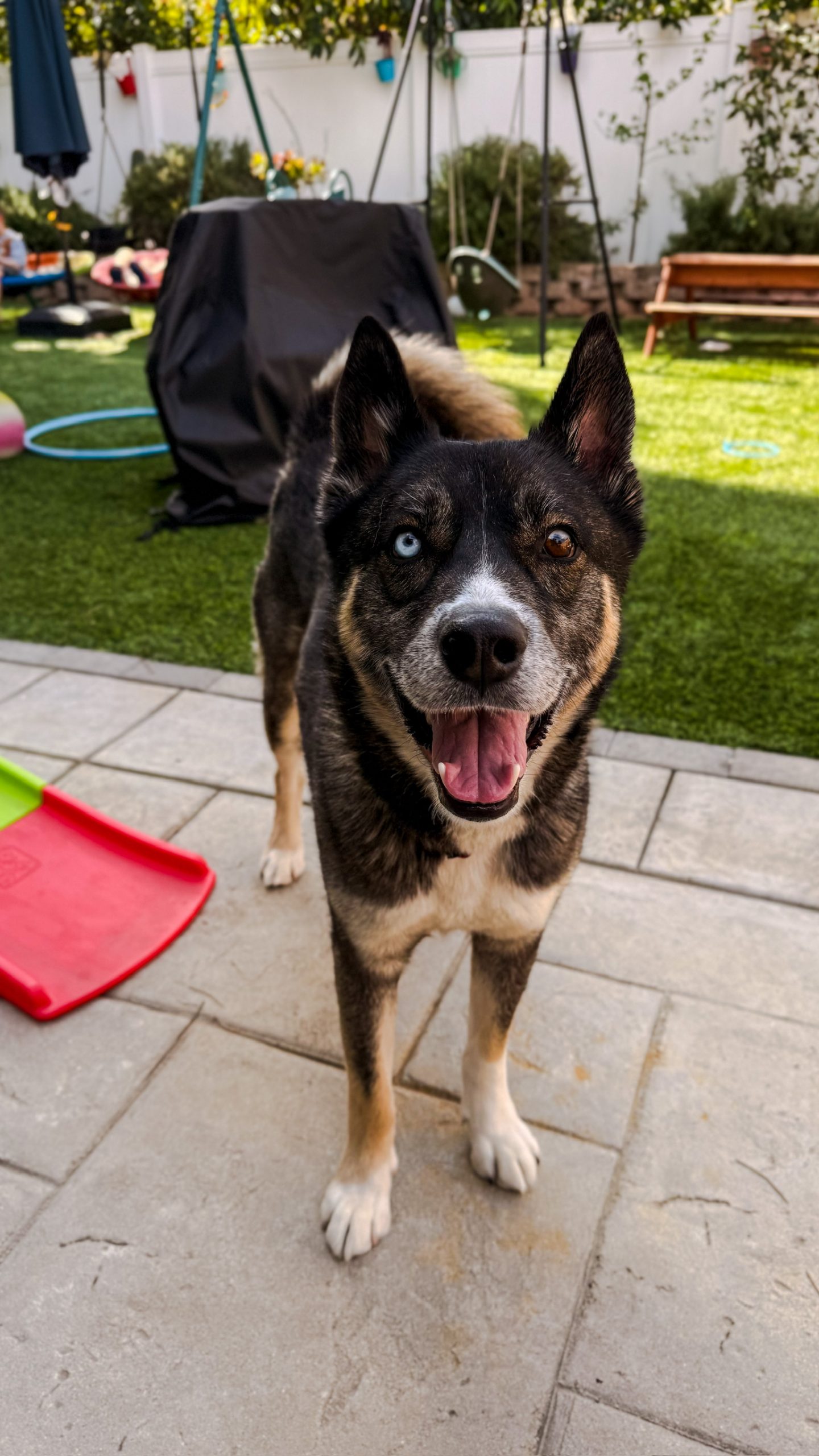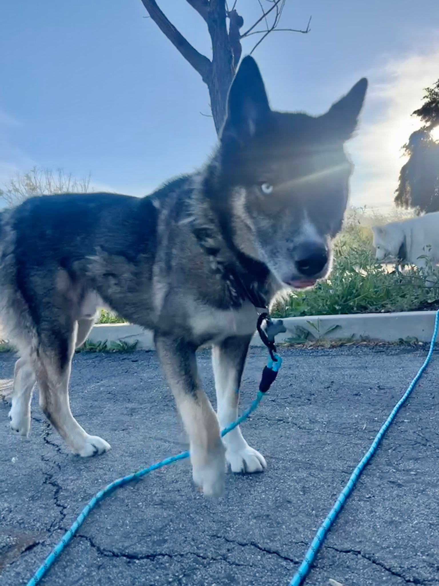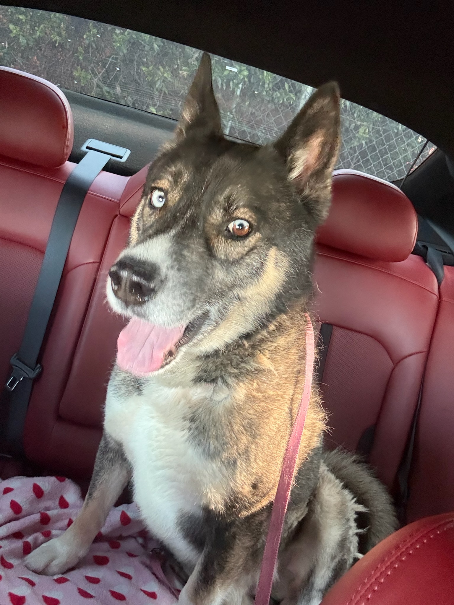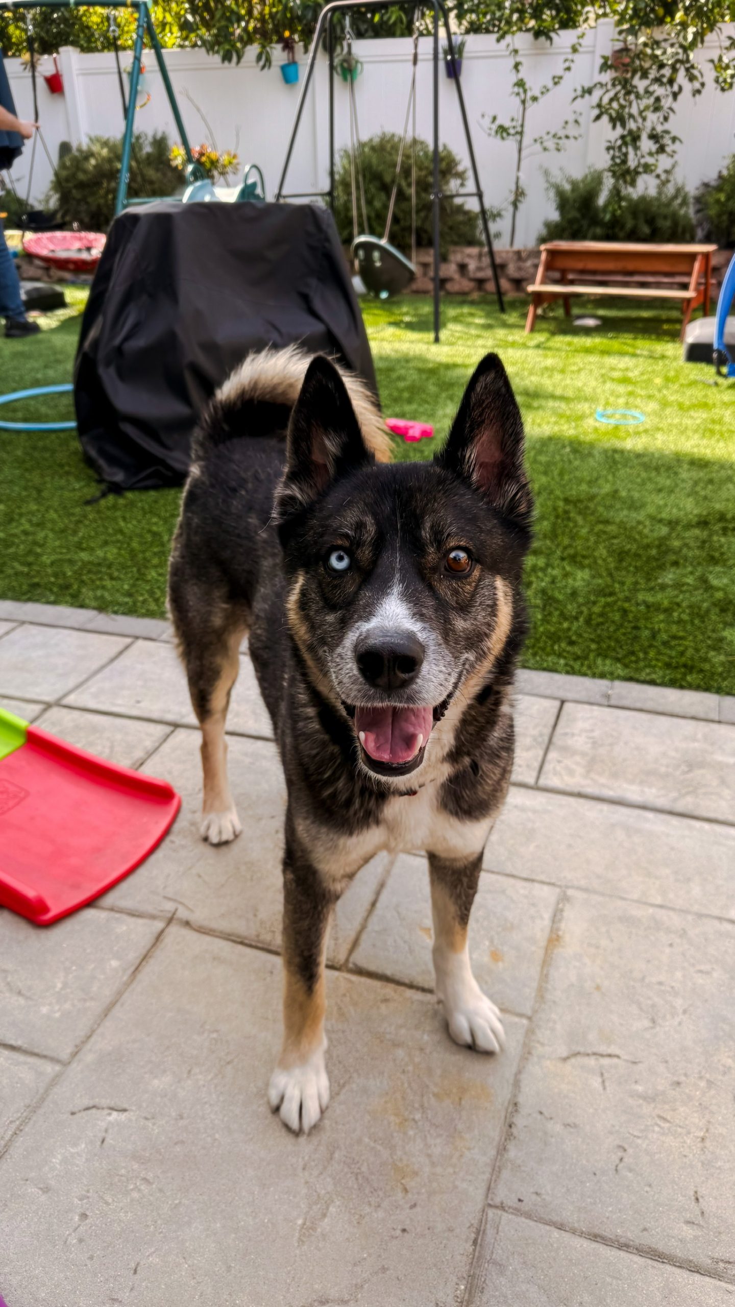 He is a 4 year old tricolor Malinois Husky mix weighing 56 pounds, who is ready for a fresh start after being owner surrendered due to a move.