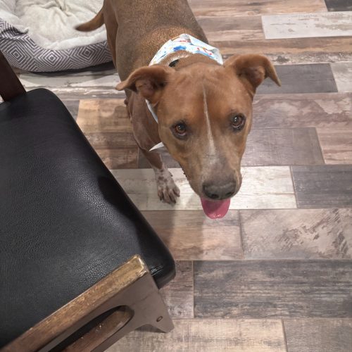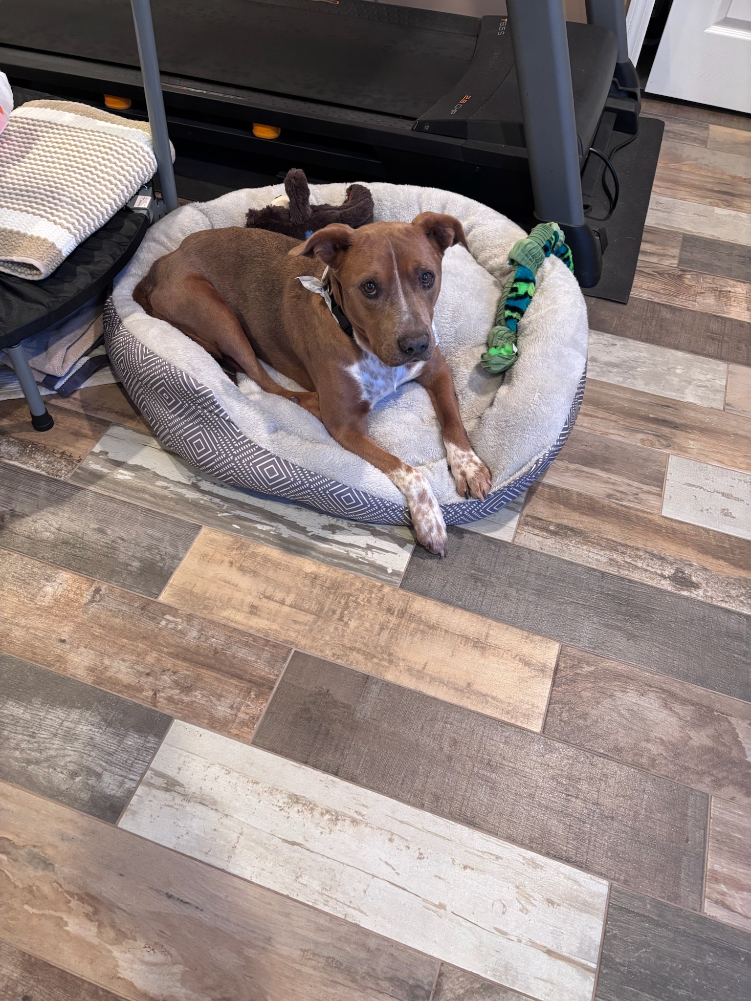 On his very first night in foster care, Gus slept straight through the night, like a dog who hadn’t known a cozy, calm sleep in far too long. Since then, he’s shown just how sweet and gentle he is. Gus loves pets, curling up in his warm bed, and soaking in all the affection he can get. He does well on walks and enjoys roaming and exploring his foster home’s backyard.