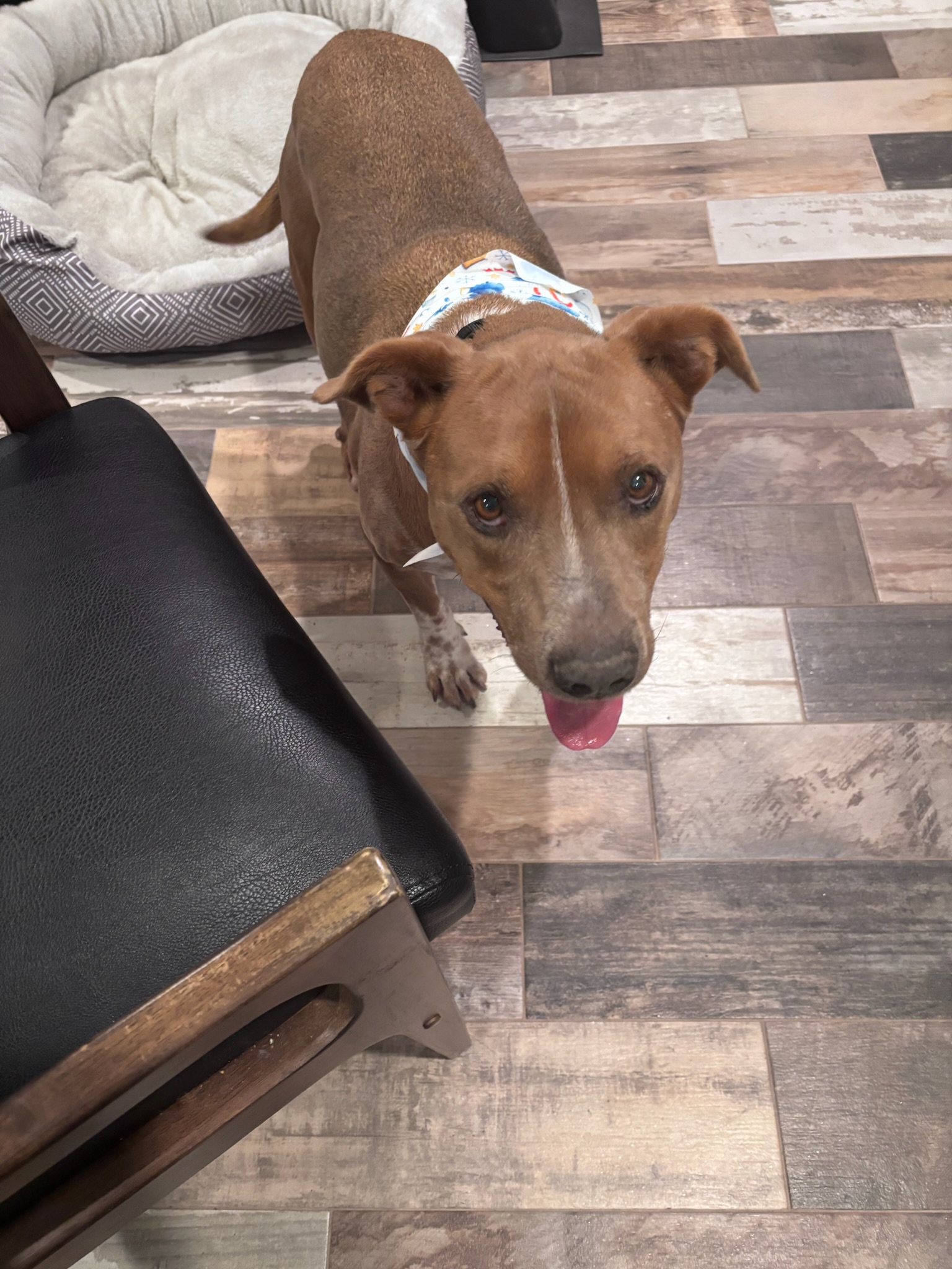 Gus Gus is an 8 year old, 54 lb pitbull mix who was saved just hours from euthanasia at Downey Animal Care Center.
