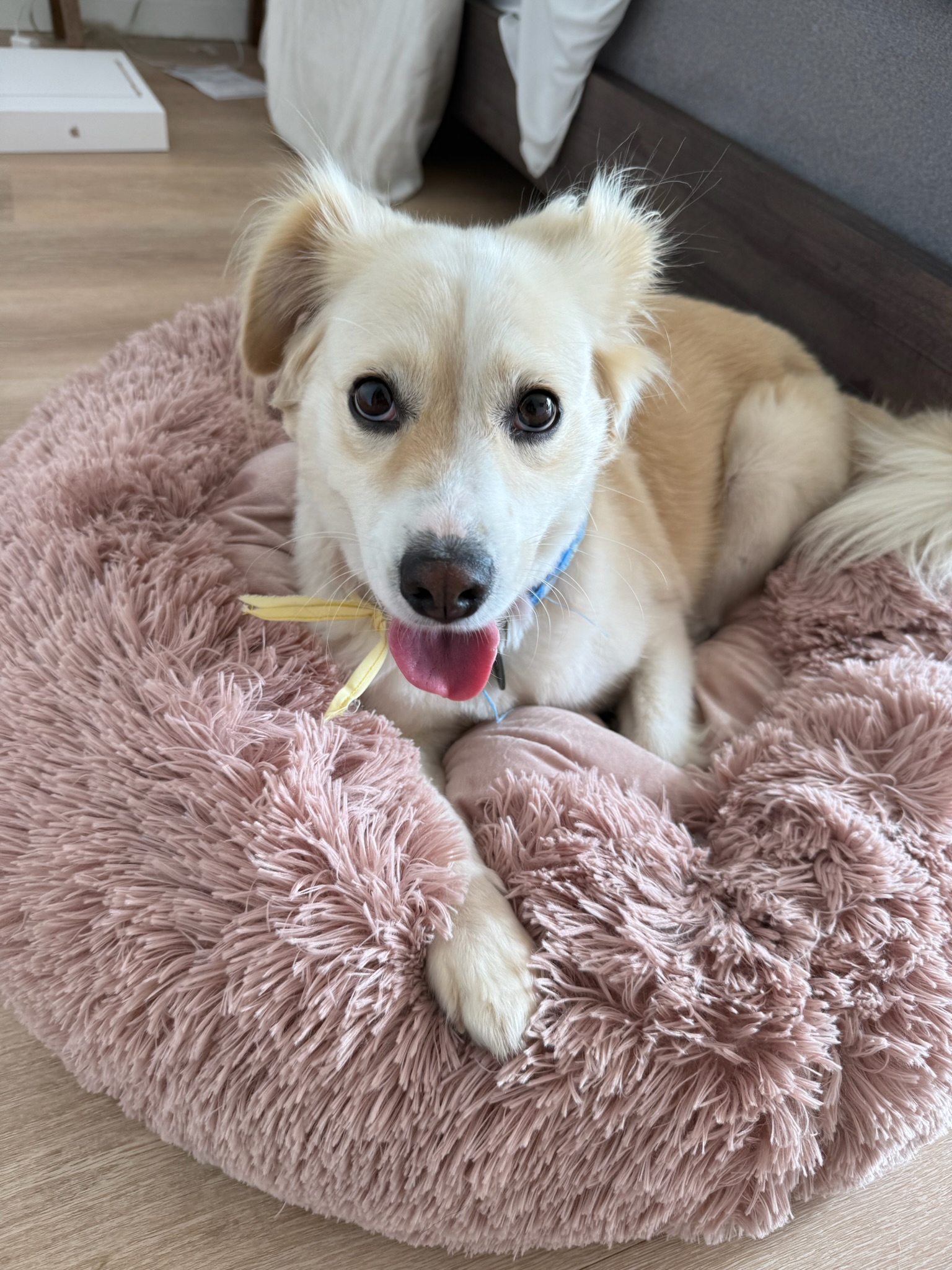 Juniper is a 4 year old, 26 lb spaniel mix who is as pretty as her name. With her soft blonde coat, sparkling eyes, and sweet personality, she’s the kind of dog who can instantly brighten your day just by being in it.