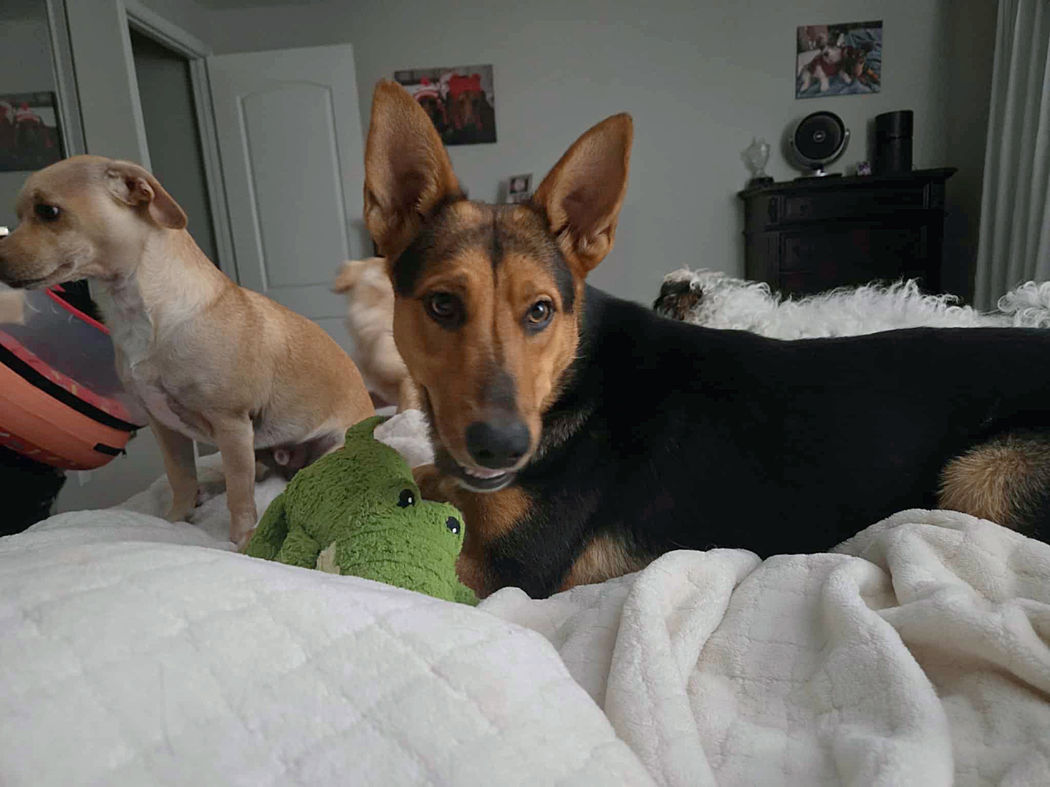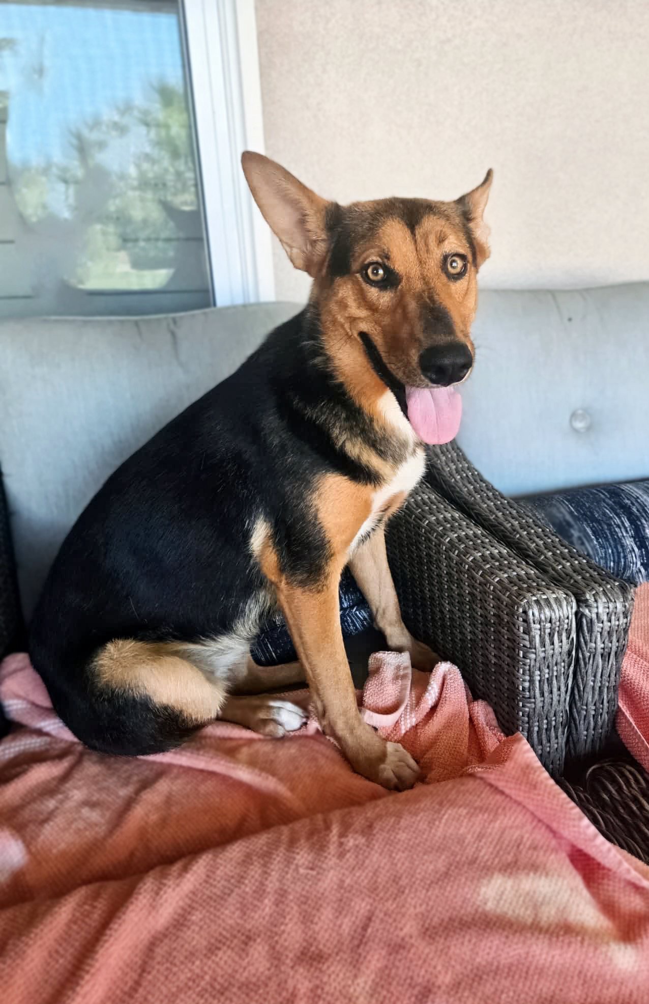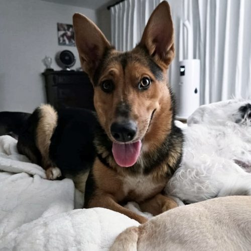 This 15-month-old shepherd is exactly what her name says — a true miracle. She is the most loving, loyal, and cuddly companion you could dream of. Miracle is wonderful with toddlers, great with cats, and absolutely adores other dogs of all sizes. She’s also the kind of pup who welcomes strangers like they are old friends, her tail never stops wagging.
