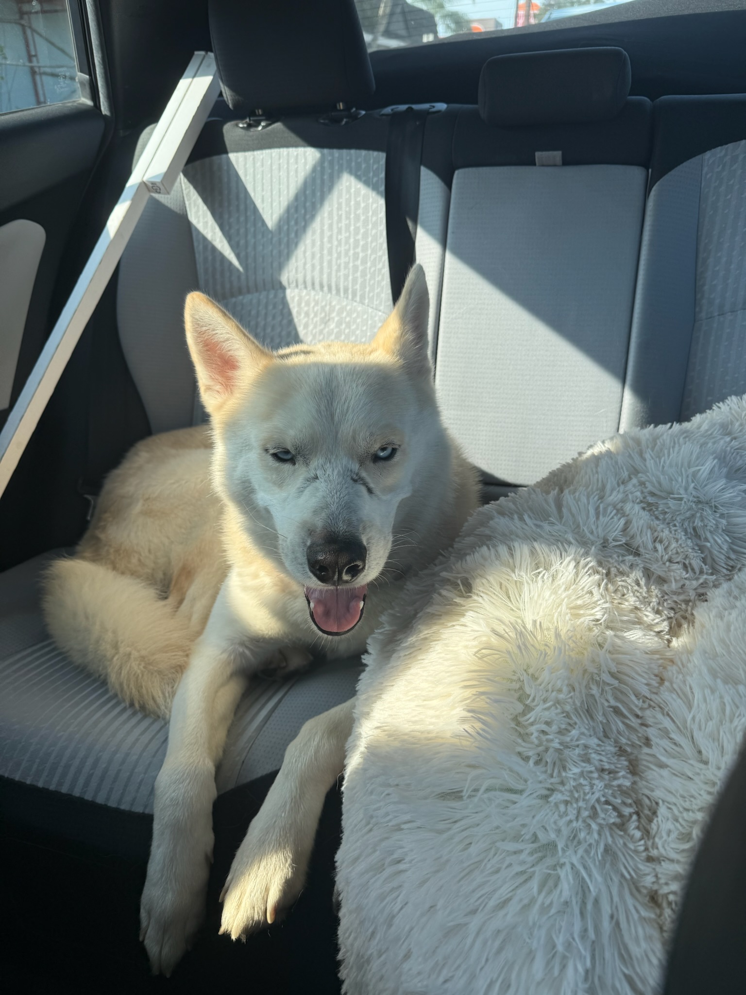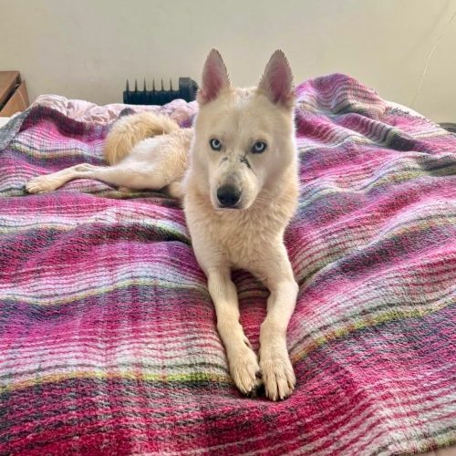 Nikolai is a 40 pound white Husky Shepherd mix with the biggest smile and an even bigger heart. You would never guess this happy boy had a rough start. Found with his mouth taped shut, he has turned that heartbreaking beginning into an incredible comeback story. Now he is all confidence, joy, and love.