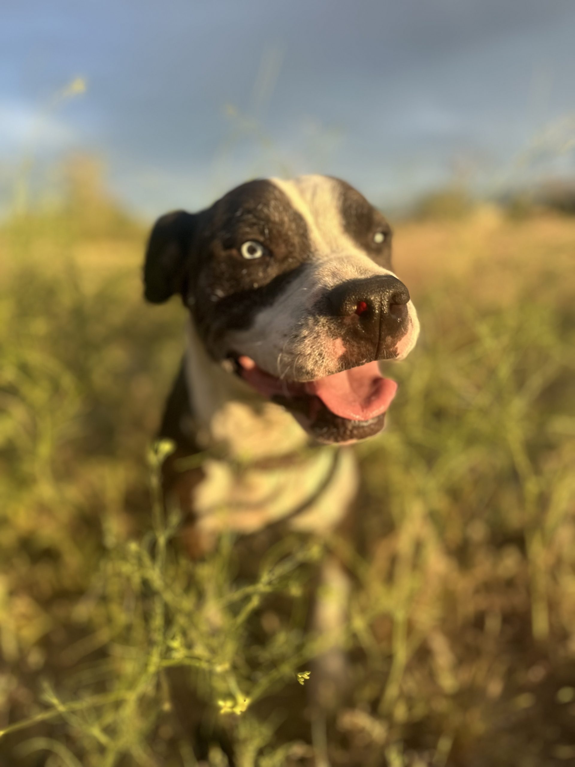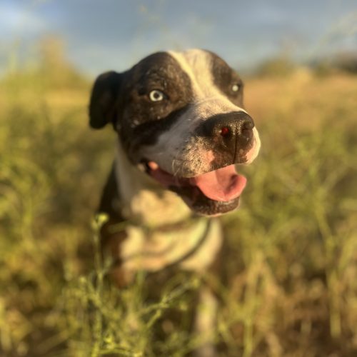 This playful girl thrives on exercise, engagement, and fun. She would love a home with a kid to play with or another dog to romp around with. She is the perfect companion for someone who wants a happy, ENERGETIC best friend by their side.
