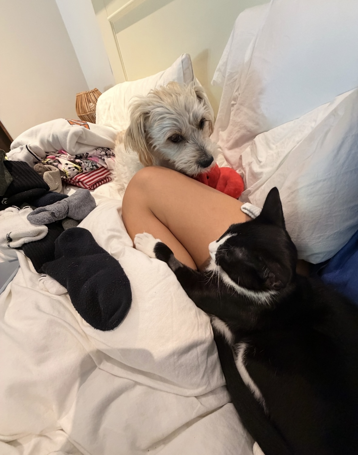 He’s been completely unbothered by the other small dogs in the home and has shown zero aggression, just fear and uncertainty as he learns the world is safe again.