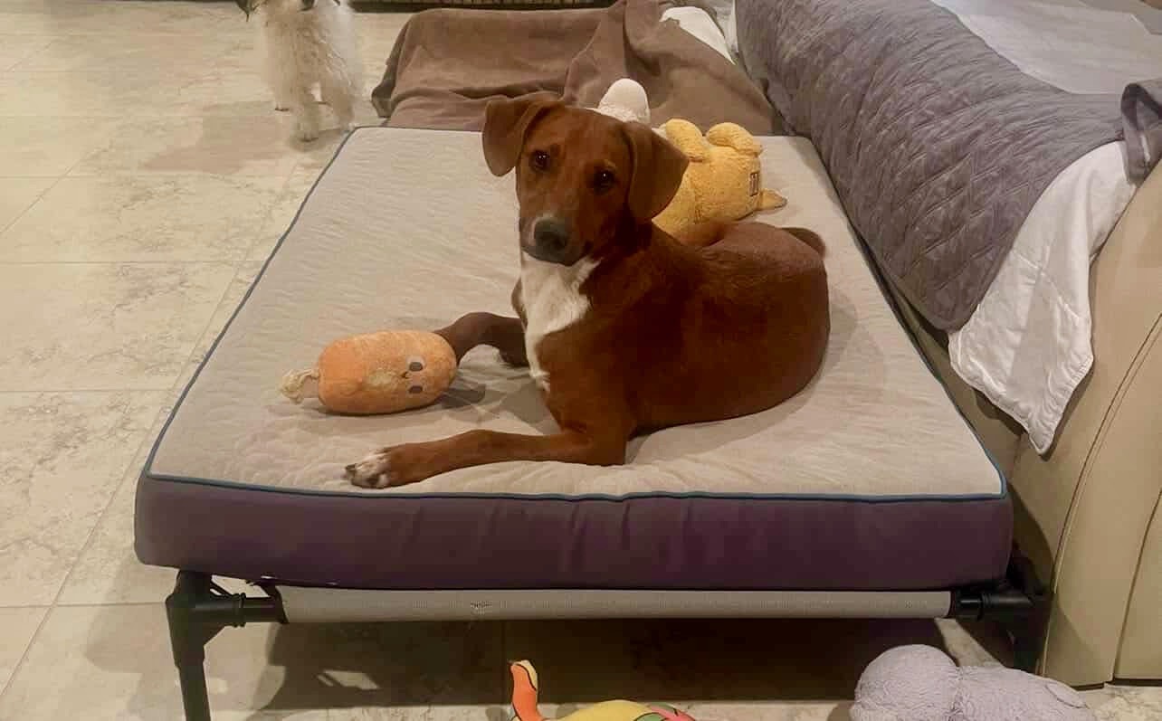 Whether he’s zipping around the yard with a toy, snuggling in your lap, or tagging along on a family outing, Trip is just happy to be included.