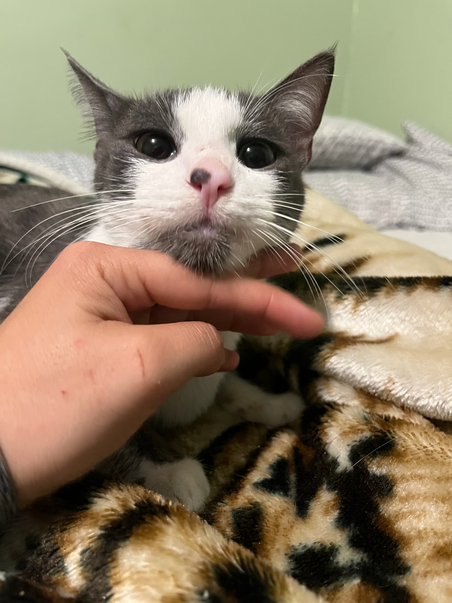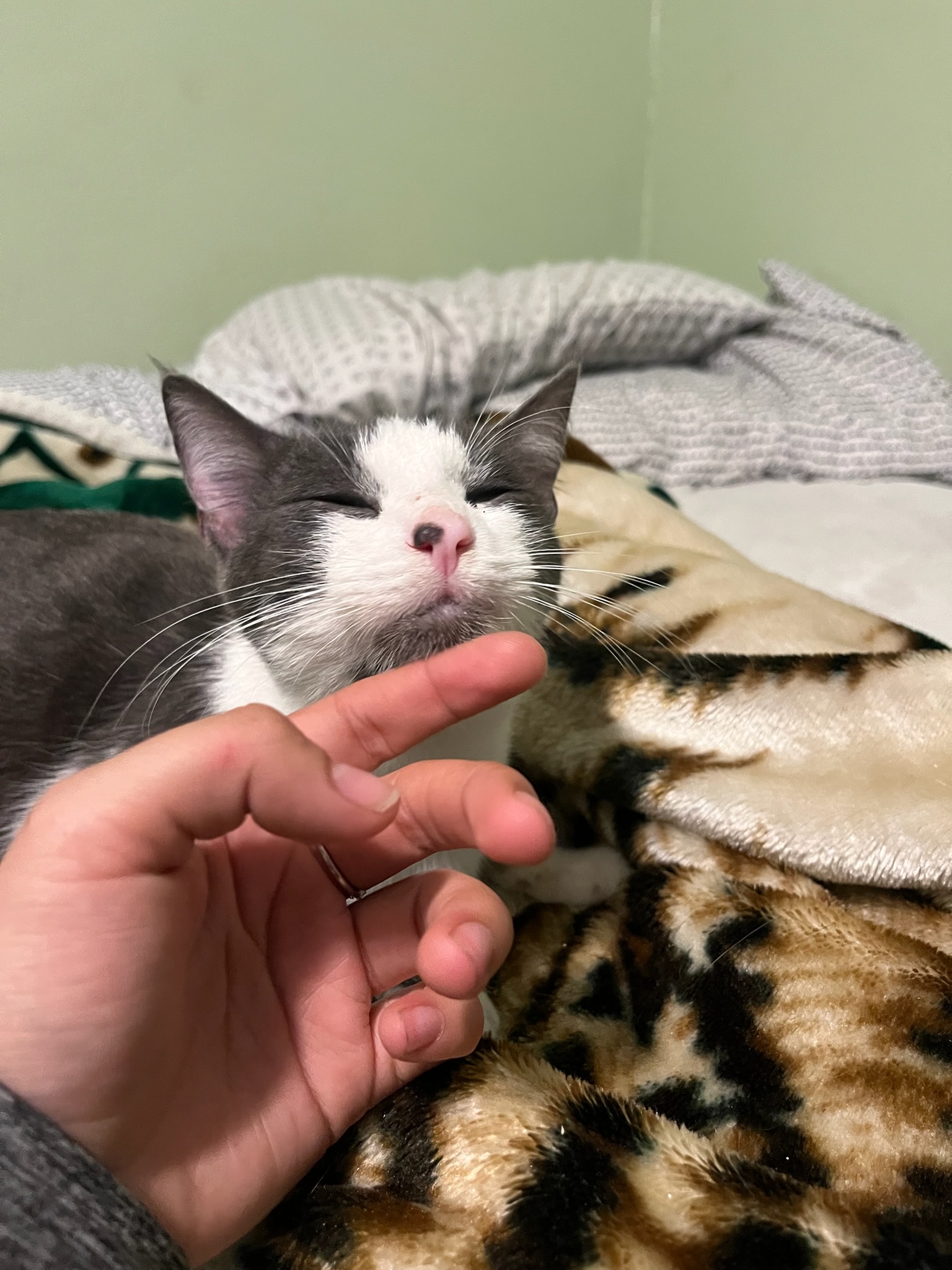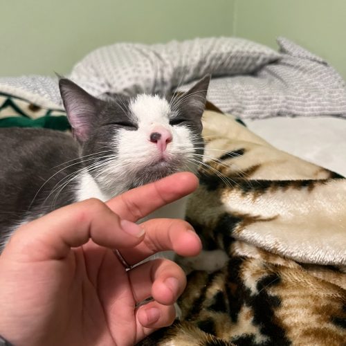 Fenix has the sweetest spotted nose and an even sweeter personality. He LOVES people, loves other cats, and is as friendly and playful as they come. He’s a total cuddlebug who wants to be part of the action and part of your heart!